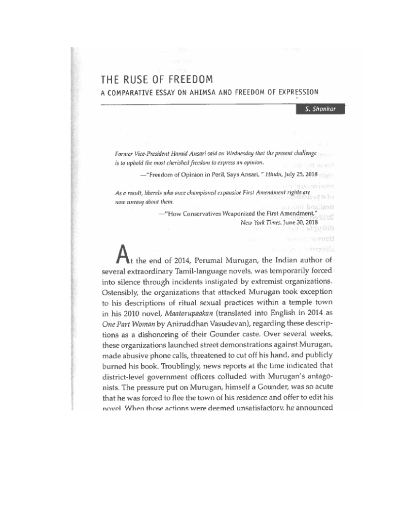 “The Ruse of Freedom: A Comparative Essay on Ahimsa and Freedom of Expression”
