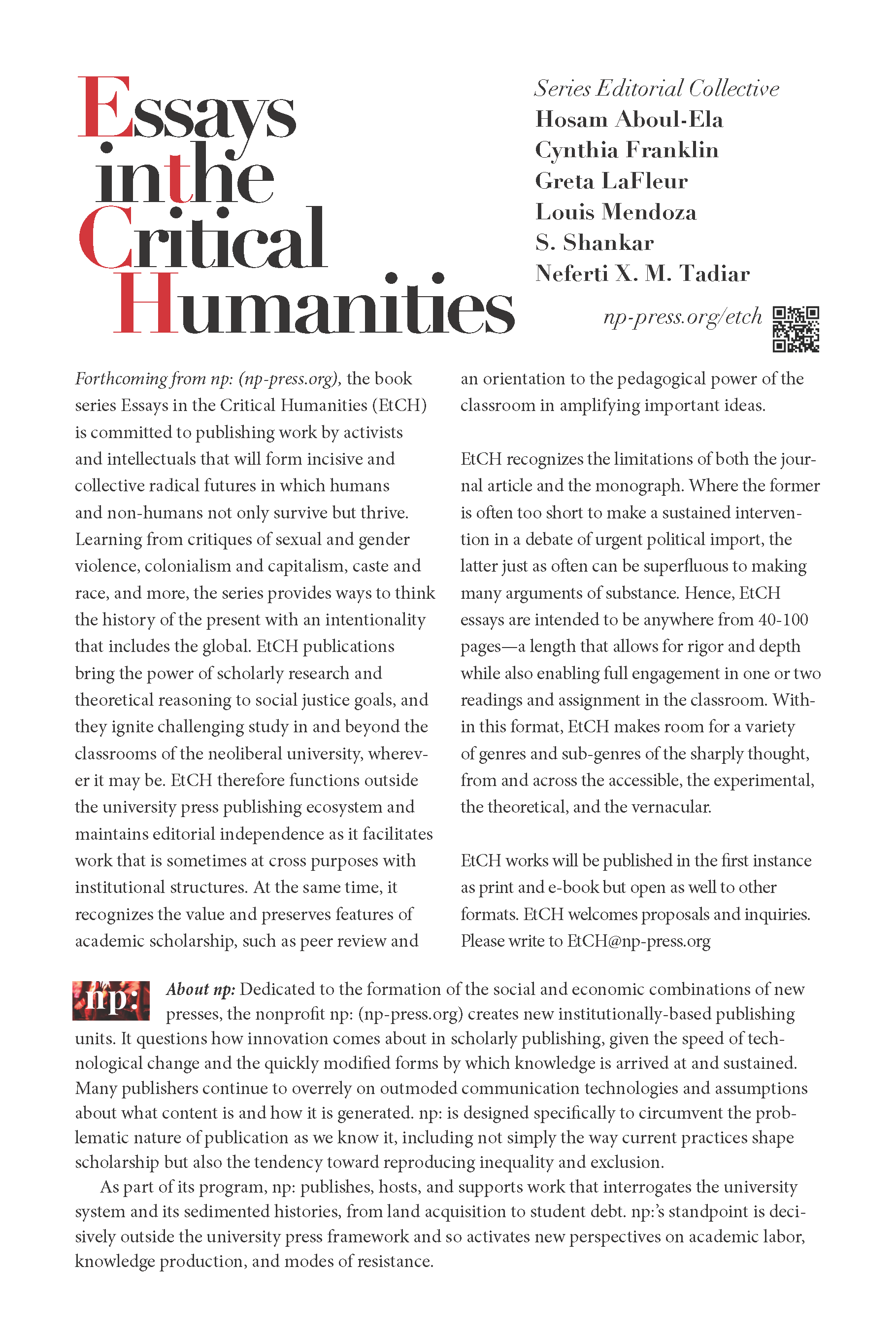 Announcing a new series aimed at social justice goals that functions inside/outside the university knowledge system.